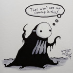 “Carl was frantic. He couldn’t see the creature anywhere but the mirror! He screamed, feeling the searing heat of its ember eyes as invisible claws tore into his flesh again and again…”